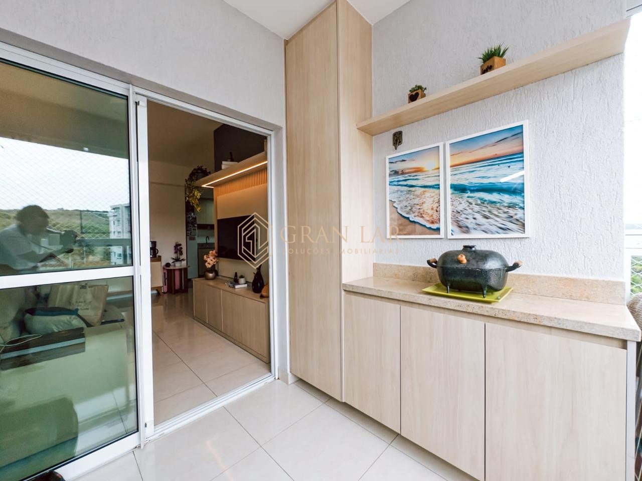 *Varanda com marcenaria completa e cortina de vidro