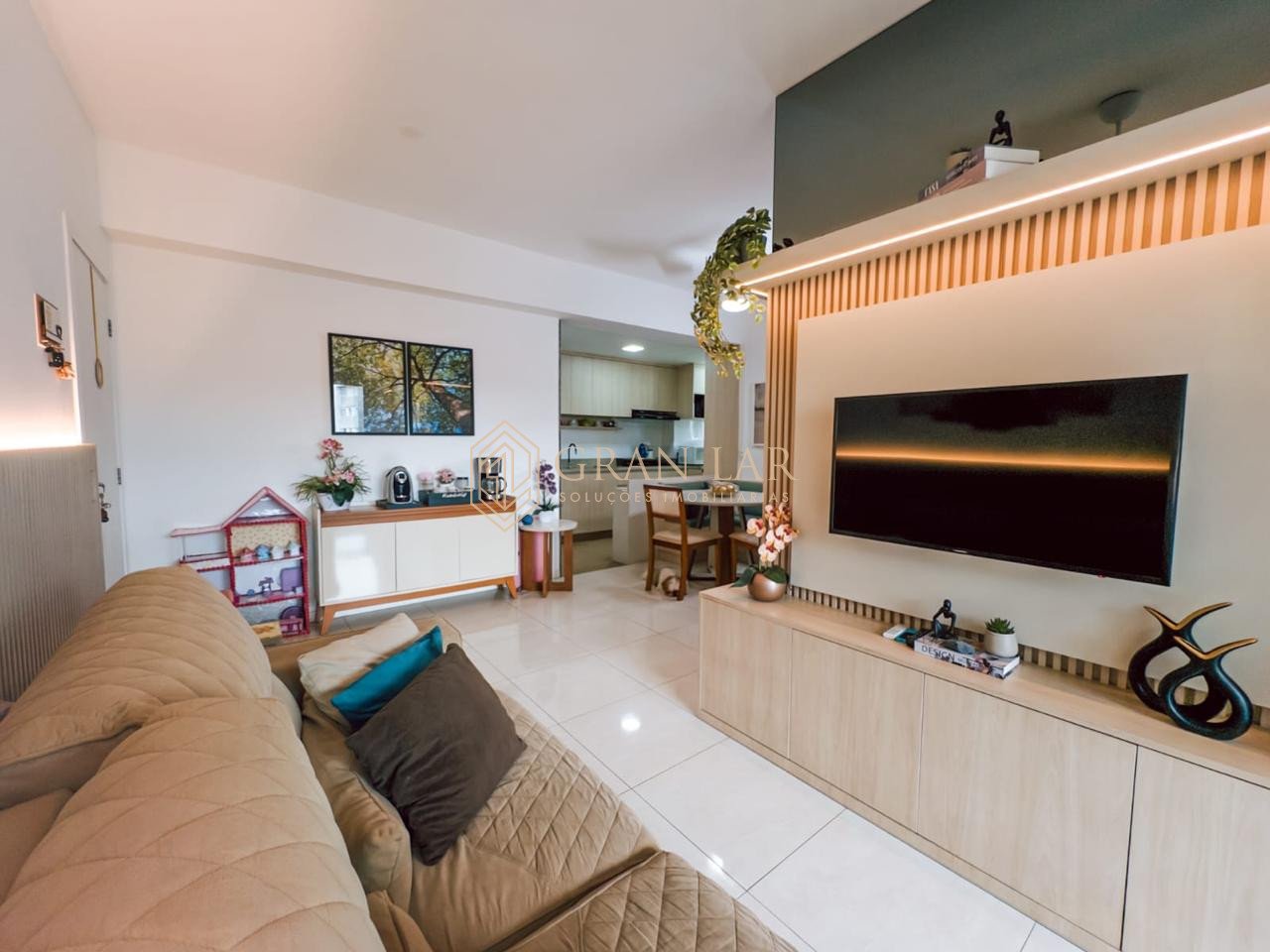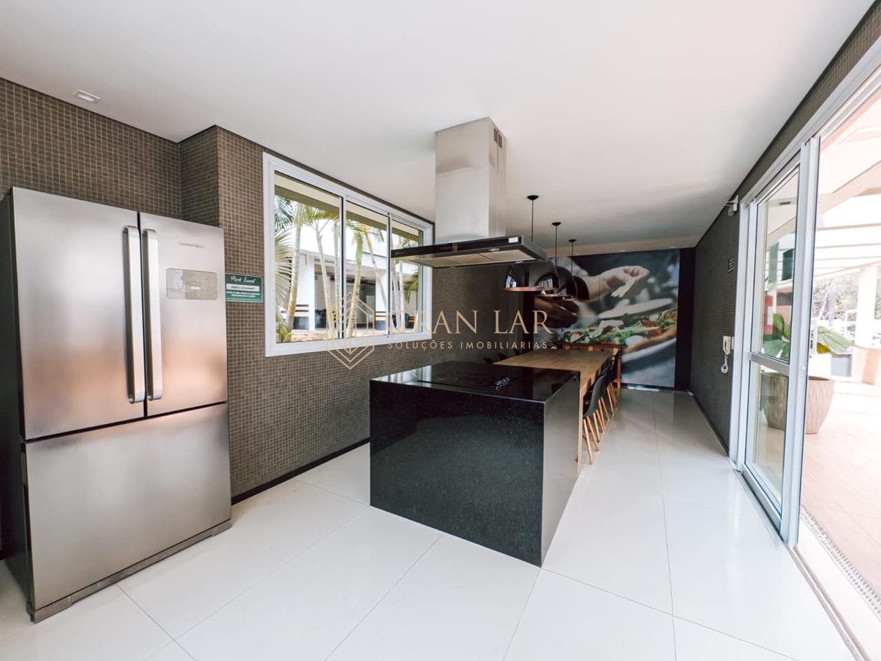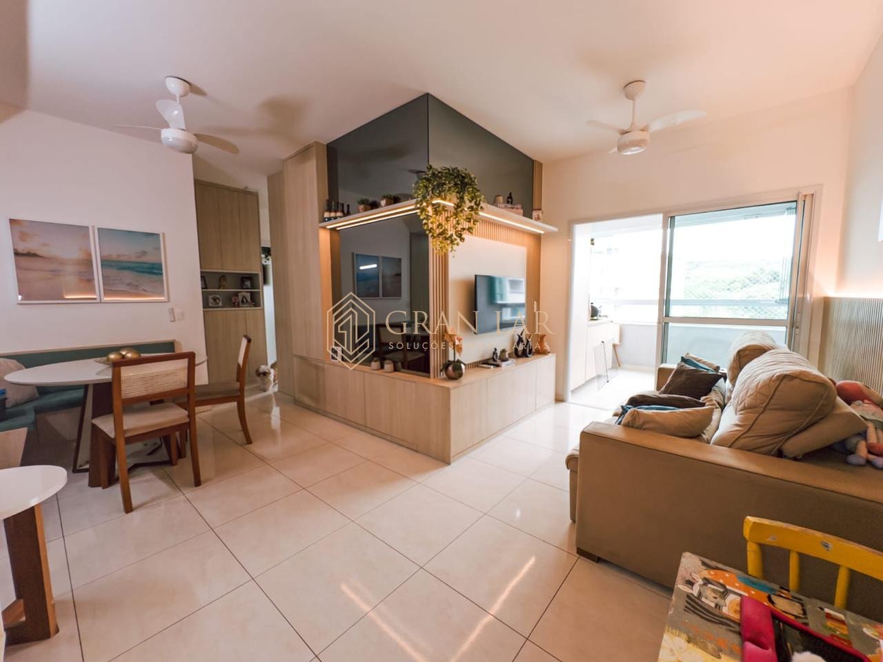 *Sala com marcenaria completa e mesa central