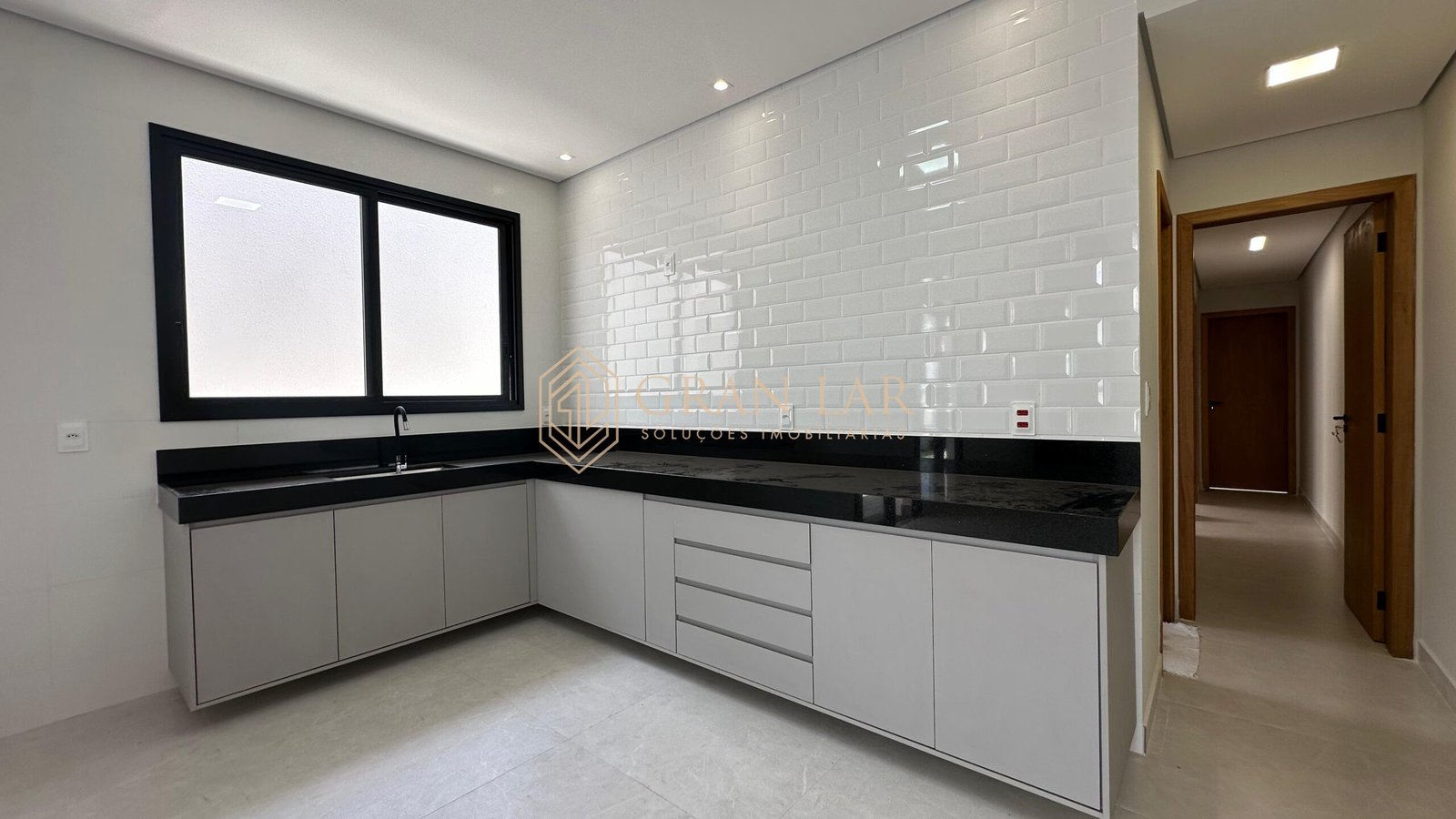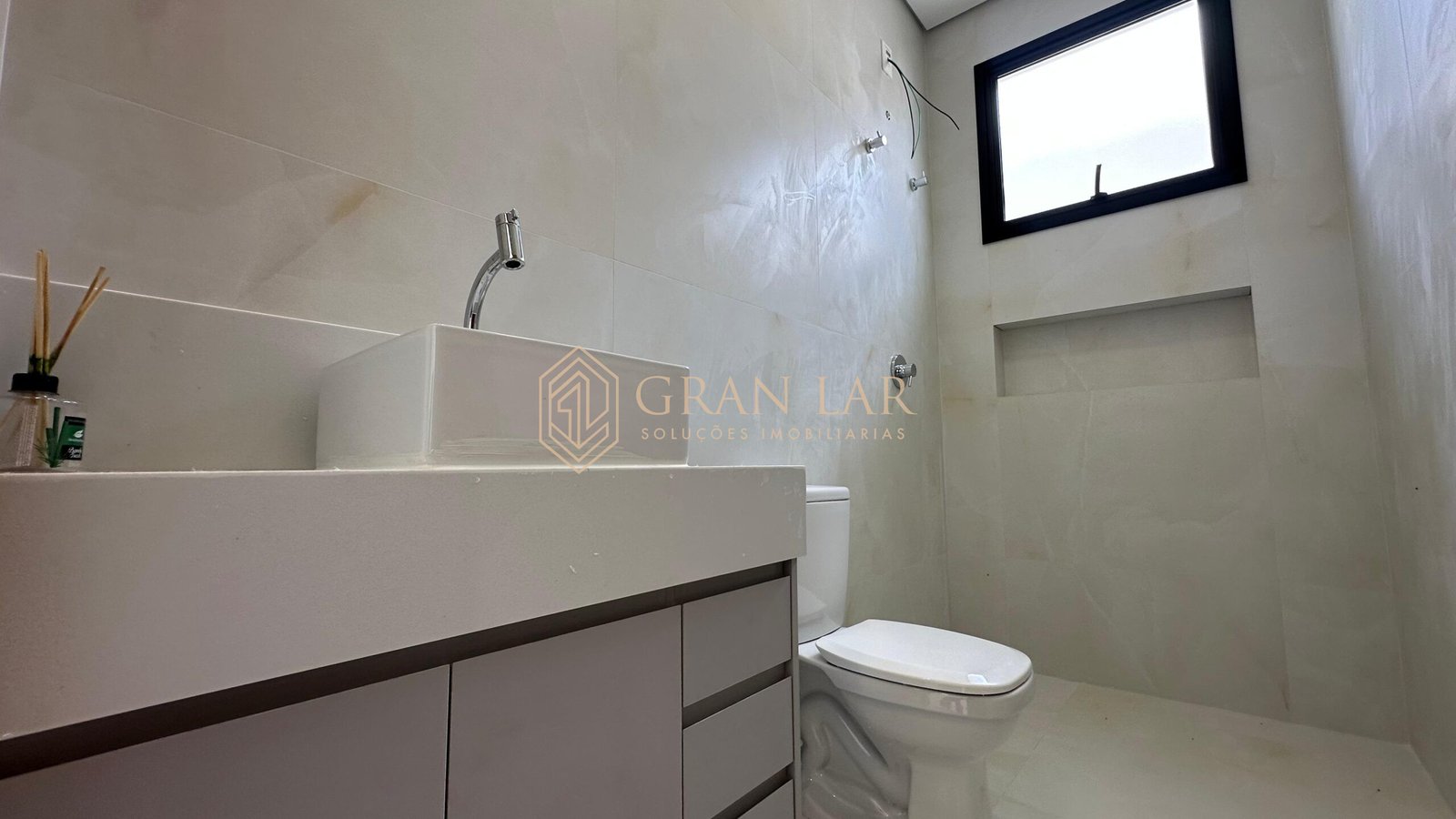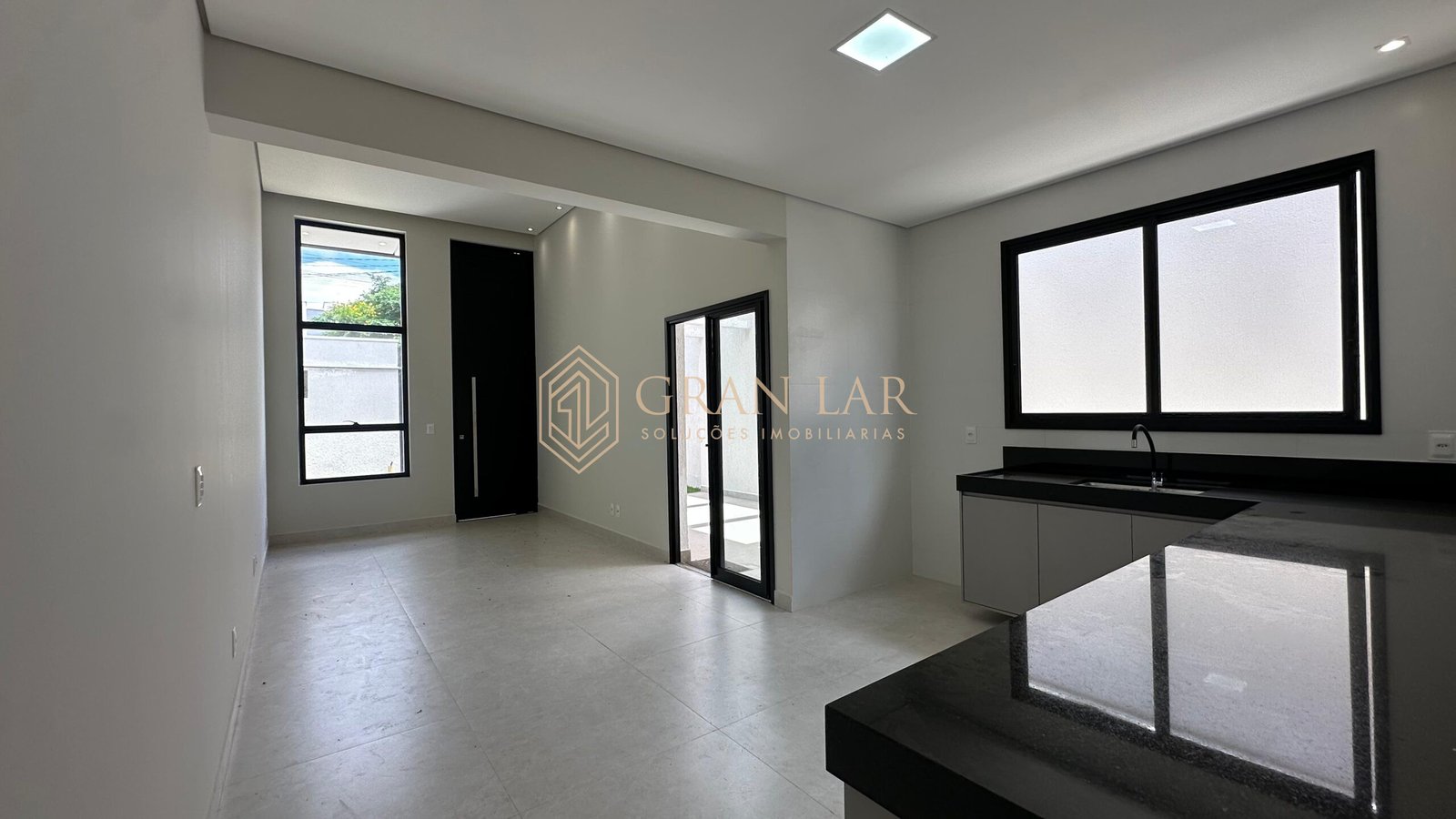 Toda em porcelanato e esquadria de alumínio