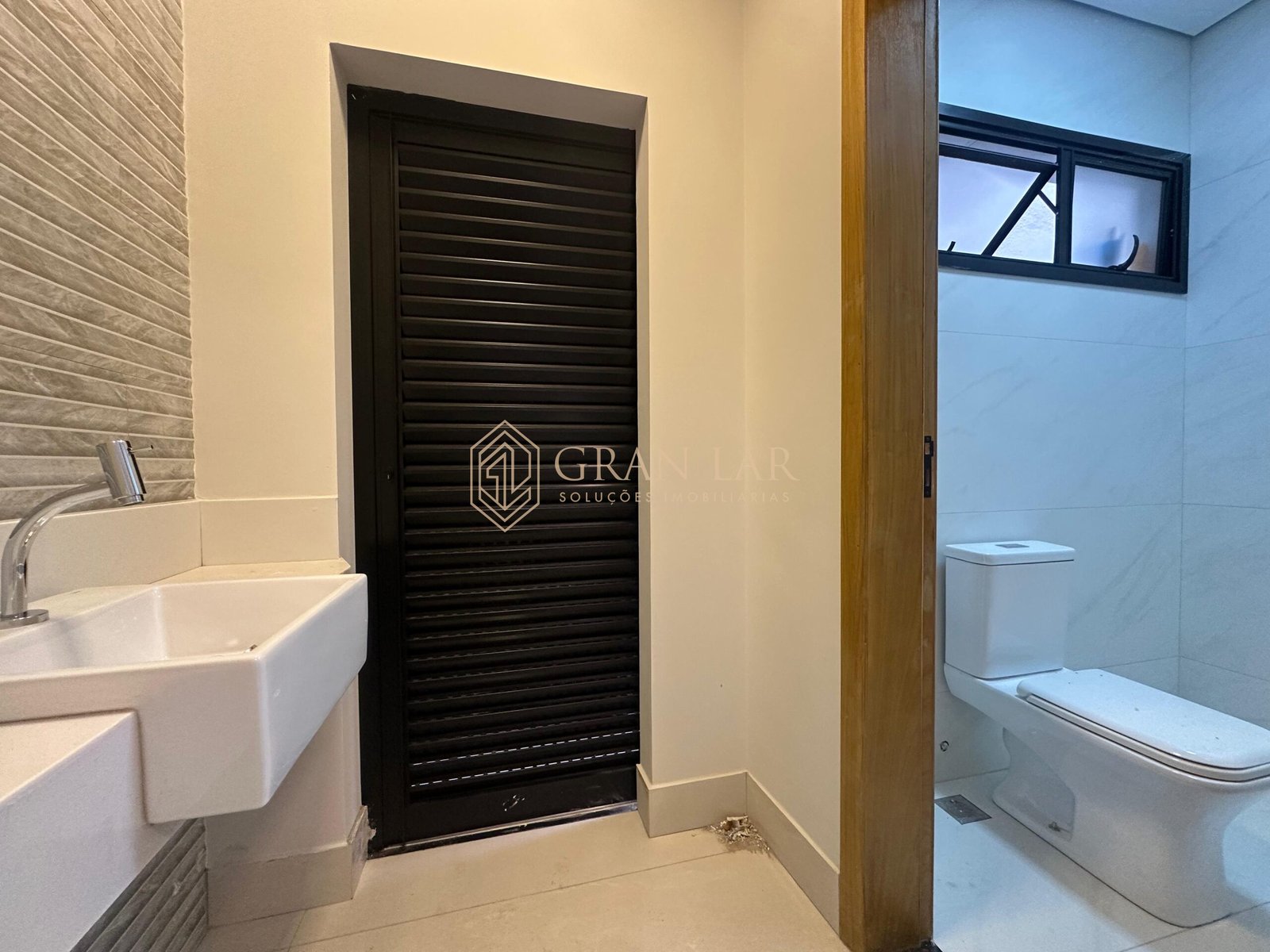 Banheiro social moderno e bem distribuído