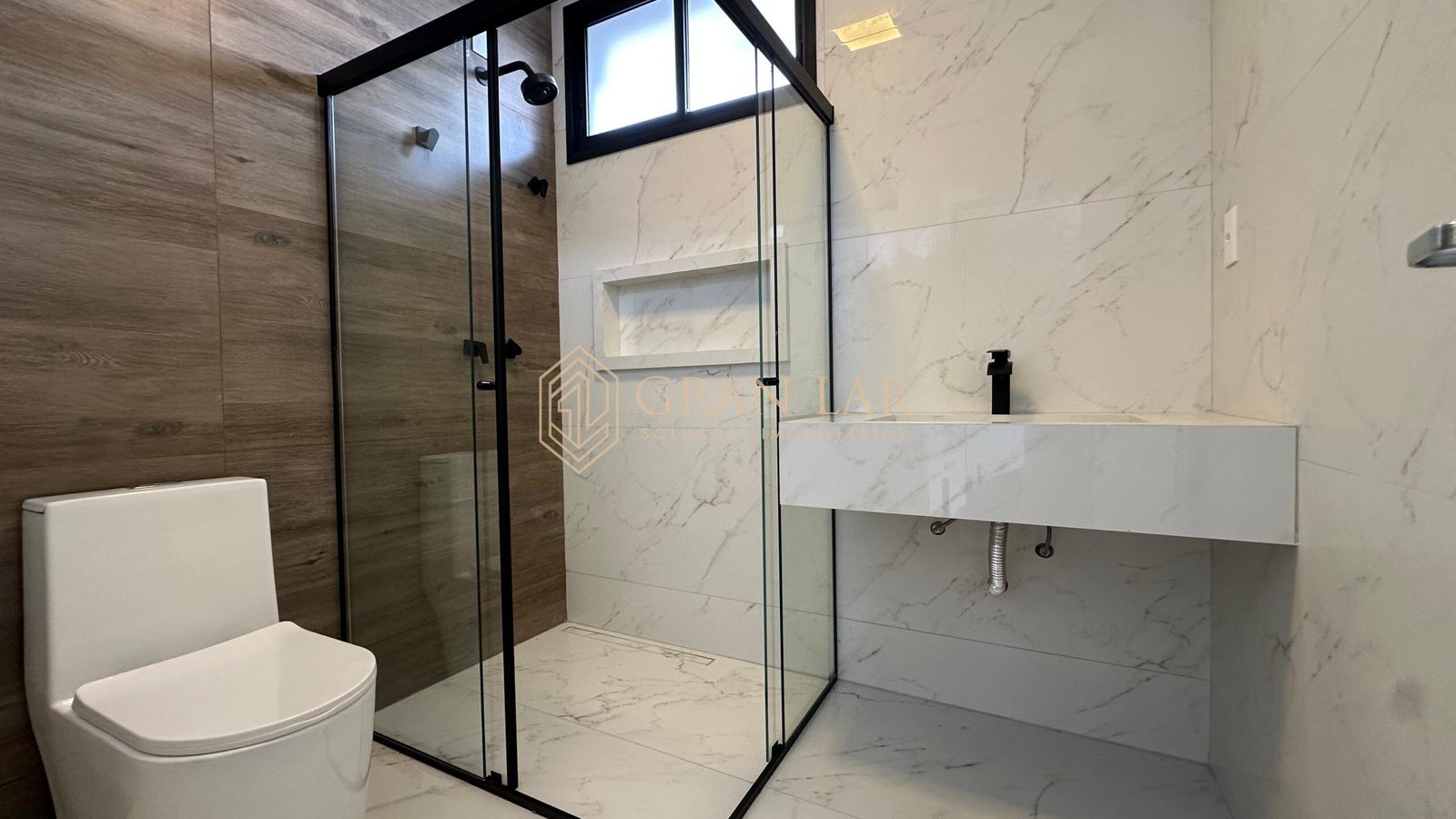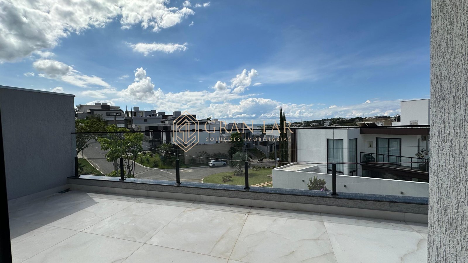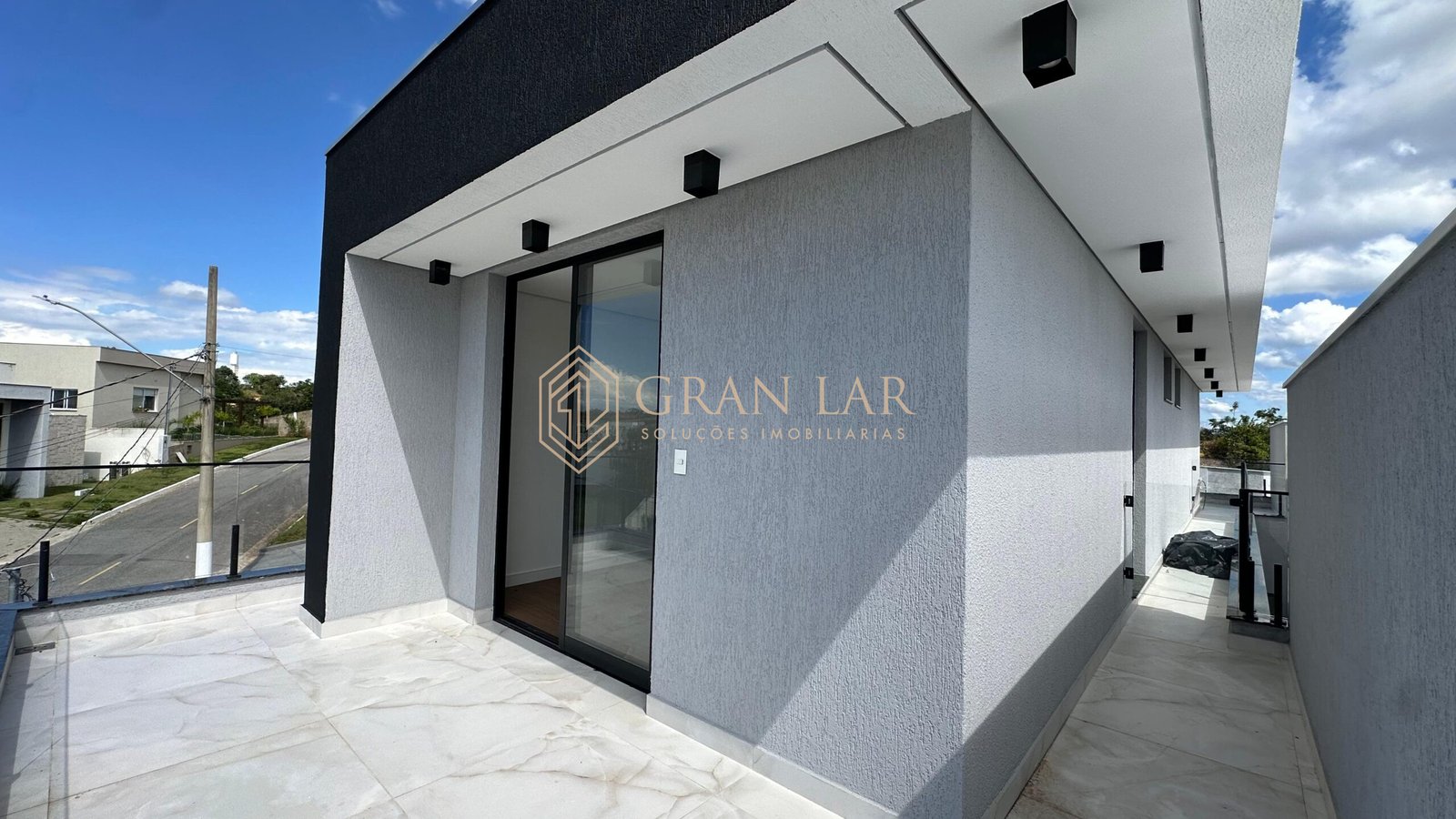 Fachada moderna em esquadria de alumínio e porcelanato