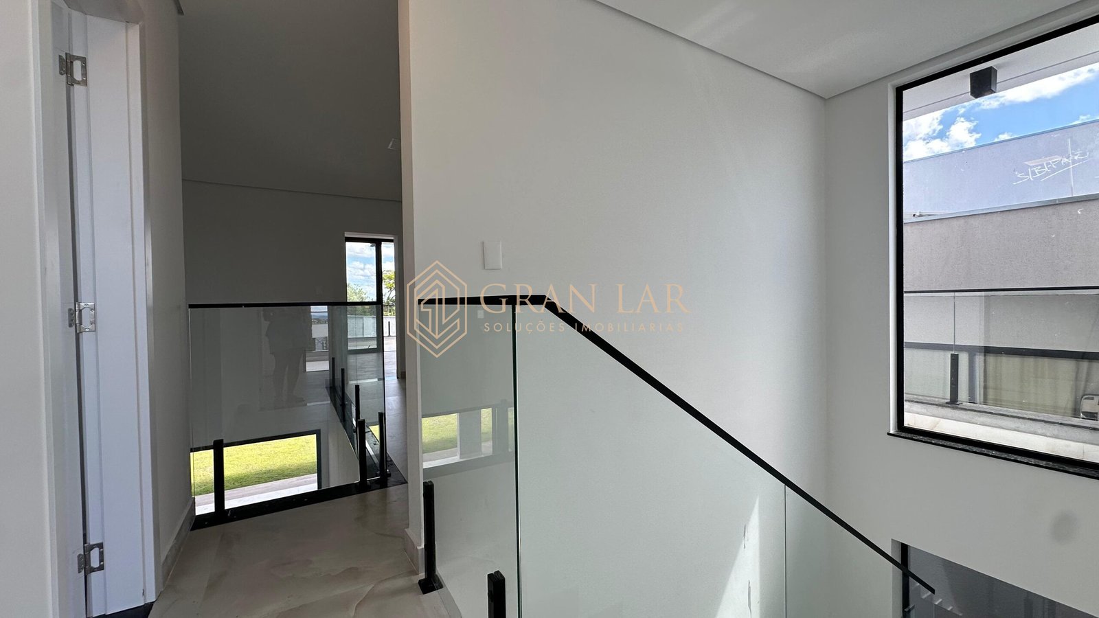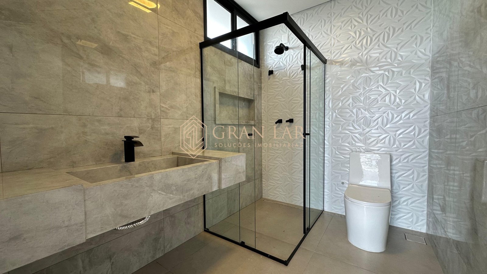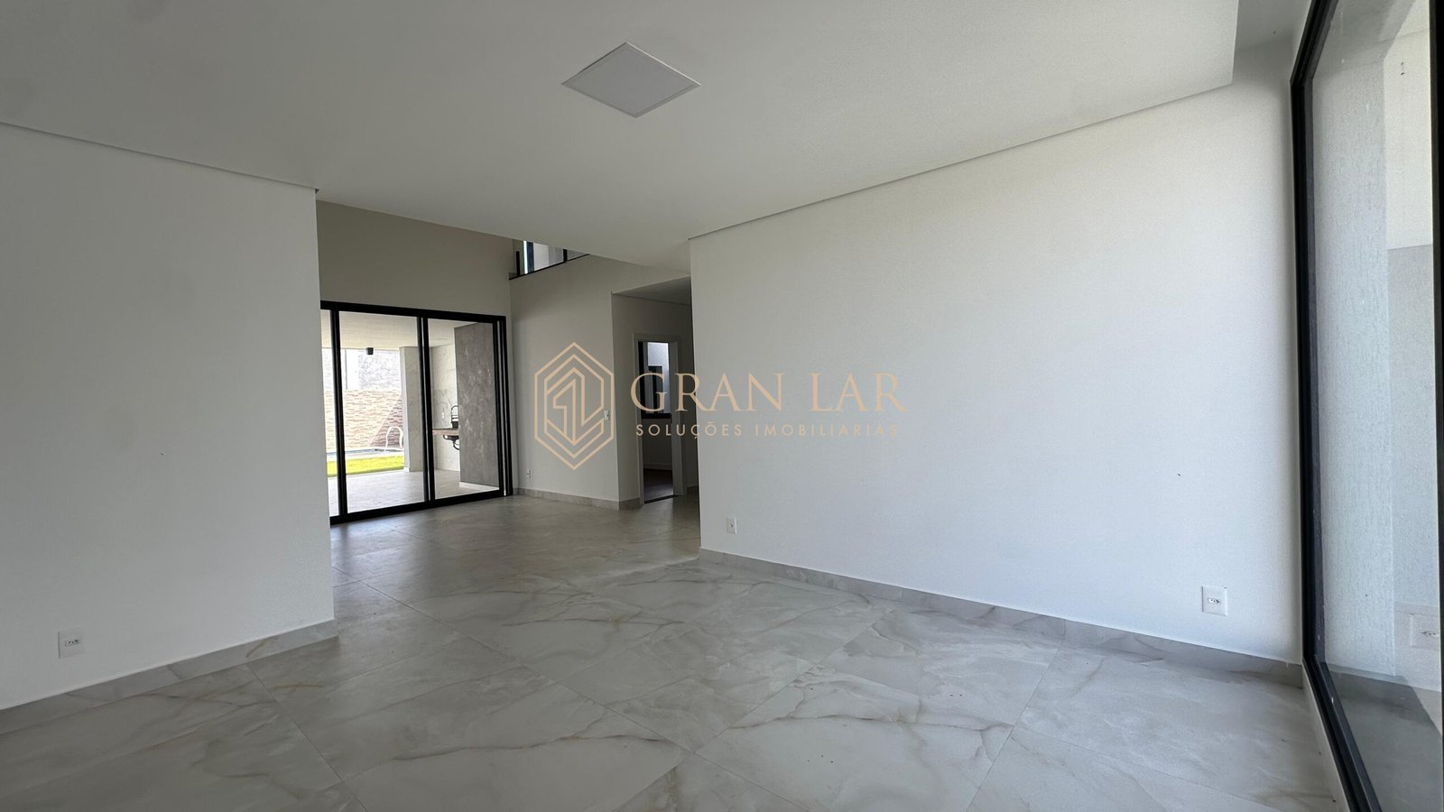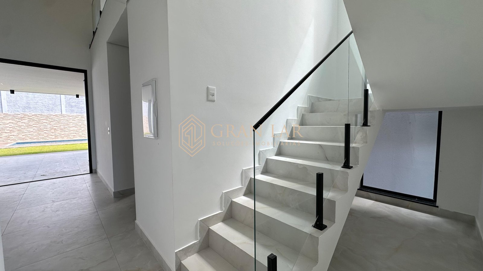 Fachada moderna em esquadria de alumínio e porcelanato