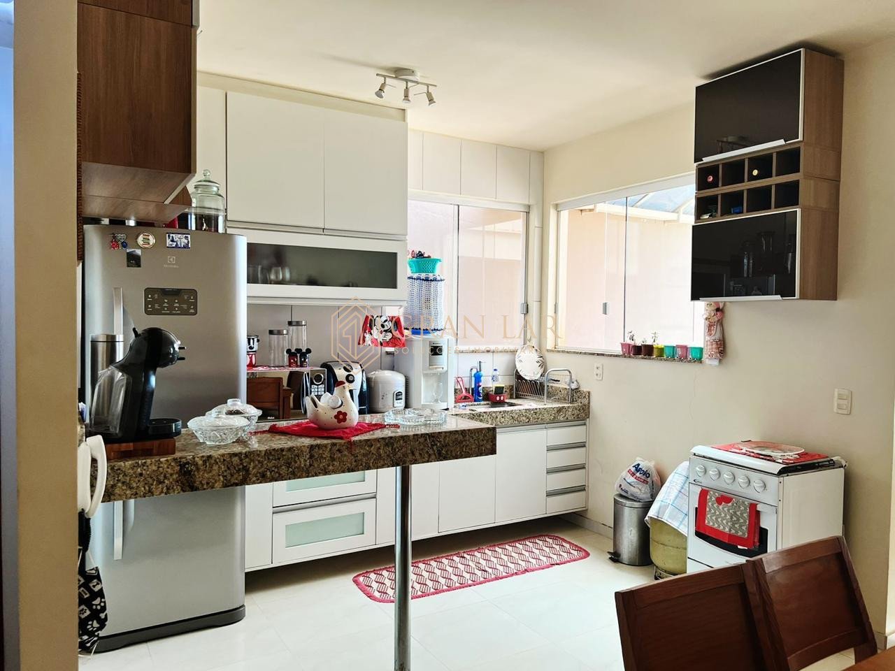 O imóvel conta com 3 quartos, sendo 1 suíte com armários, além de uma sala para dois ambientes integrada à cozinha, criando um espaço funcional e acolhedor para o dia a dia.